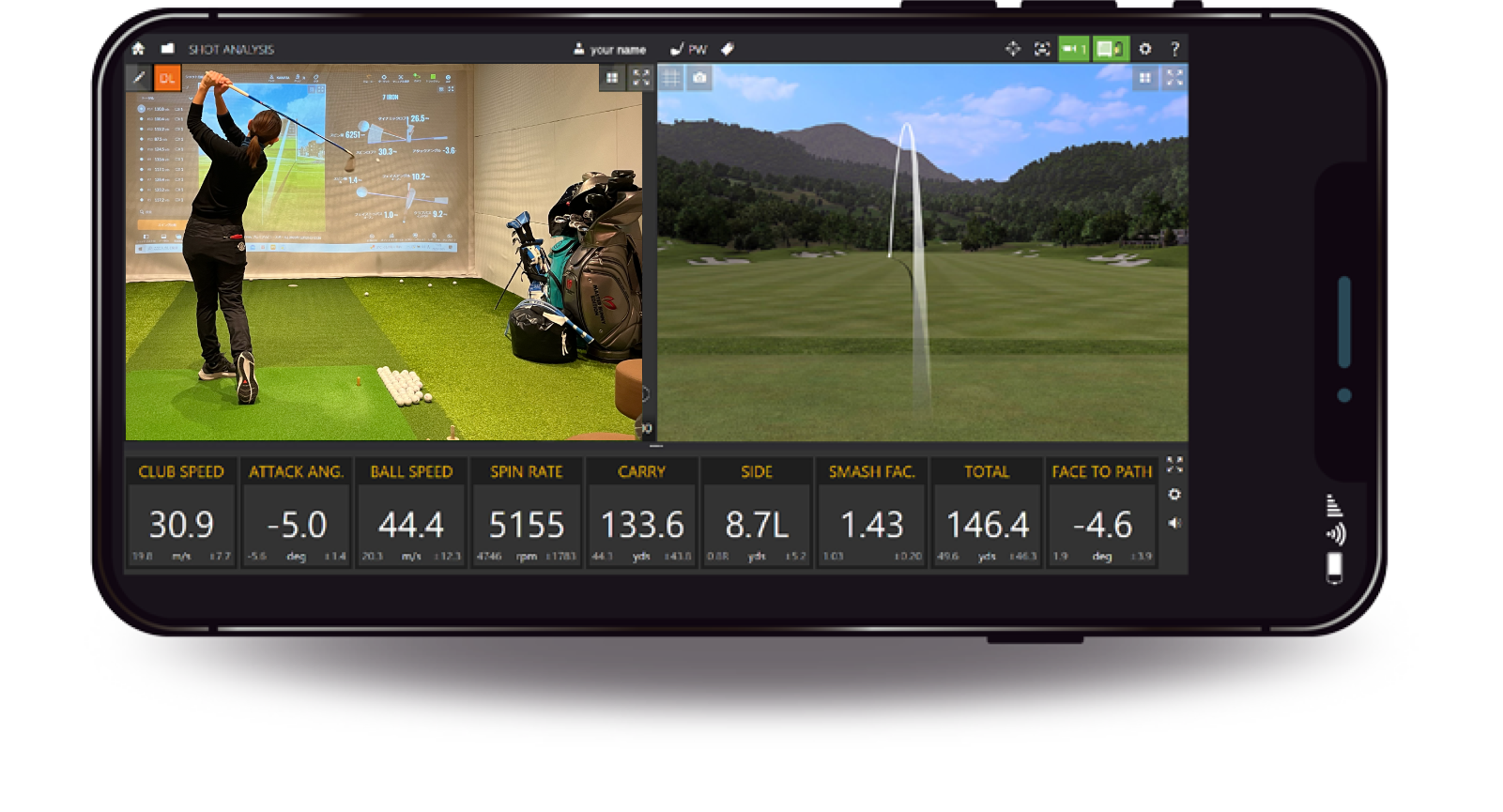 ショットを打つたびにリアルタイムに情報を測定して受け取ることができます。見たいビューを選択して、数値からビデオ、3Dのボール弾道が見られます。